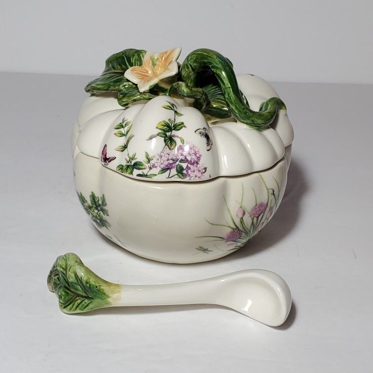 ******Pick up in SE Portland close to 82nd and Powell.****** Kaldun and Bogle Joyce Vauhgn white pumpkin sugar bowl and spoon. Part of the Garden Collection. 4" tall and 4.5" across. Rare.