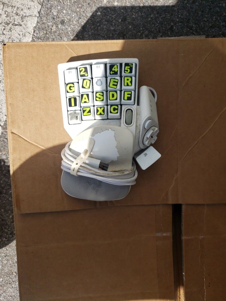 Razer Tartarus Pro — the model with analog pressure-sensitive keys (not the Chroma or V2). Amazing for WoW, FFXIV, ESO, Guild Wars, and any MMO. Has custom keymap stickers on it for ability layout. (You can keep or remove them — they peel clean.) This setup helped keep rotations tight and hand travel minimal. All keys function, analog pressure works, and pad is responsive. $45 firm Cash only. Pickup at US Storage on S. Myrtle (Clearwater).