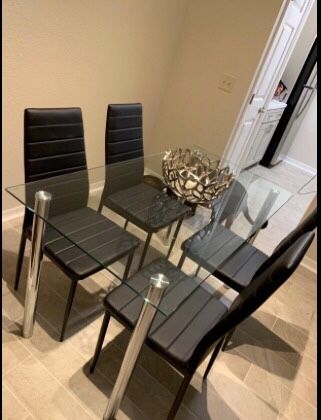 Rectangular Top Glass Dining Table And Black Chairs💥 Brand New ✅