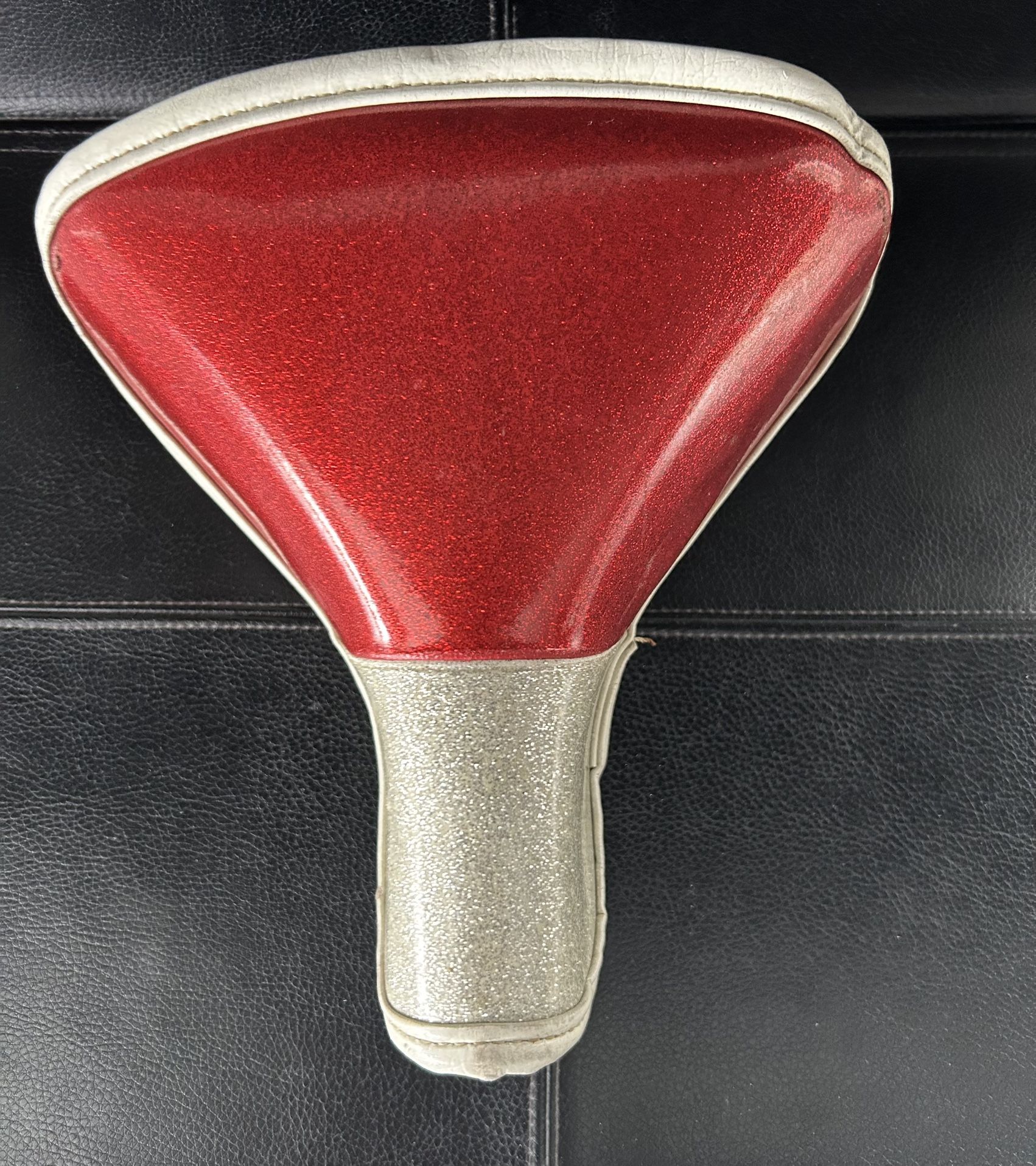 Vintage red and white metallic look bicycle seat. Pick up in Mundelein.