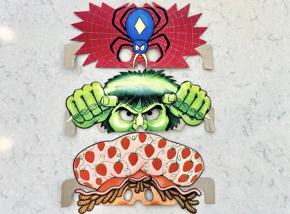 Vintage mask set Complete set of 3 Made in Hong Kong RARE vintage find! Set of 3 original 1980s paper Halloween masks featuring: • The Hulk • Spider-Man • Strawberry Shortcake These wrap-around paperboard masks cover the upper face and head and were made by Fun World (Div. Glen Cove, NY) with original 19¢ Pick ’n Save price stickers still on the back! Perfect for nostalgic collectors, Halloween decor, or 1980s-themed events. Some light vintage wear such as a small corner tip missing or a gentle crease — very minor and still looks great for display. See close-up photos for exact condition. I have two other listings with additional masks from this series in case you are interested in a larger collection. Other styles available as well. 3993SG5