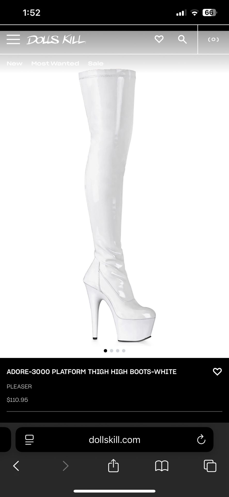 Dolls kill White Latex Thigh High Boot Platform Heels Size 8 W