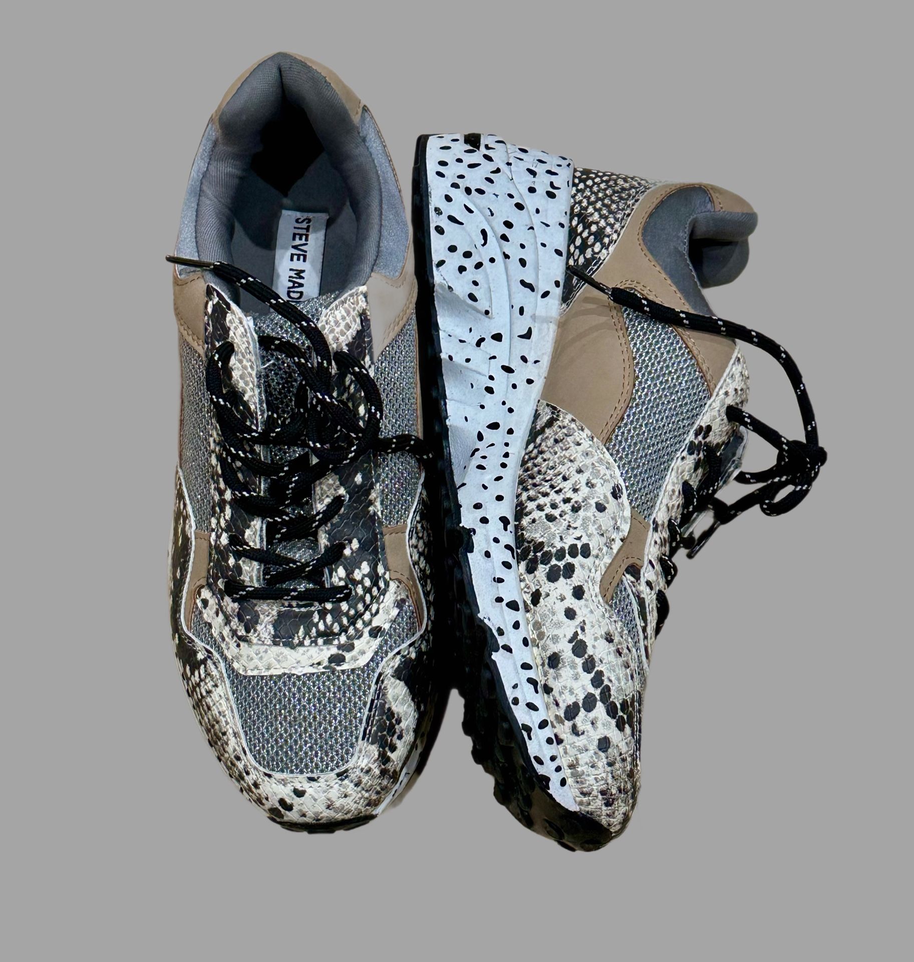 Steve Madden women’s bena wedge fashion sneakers natural snake. Size 8,5