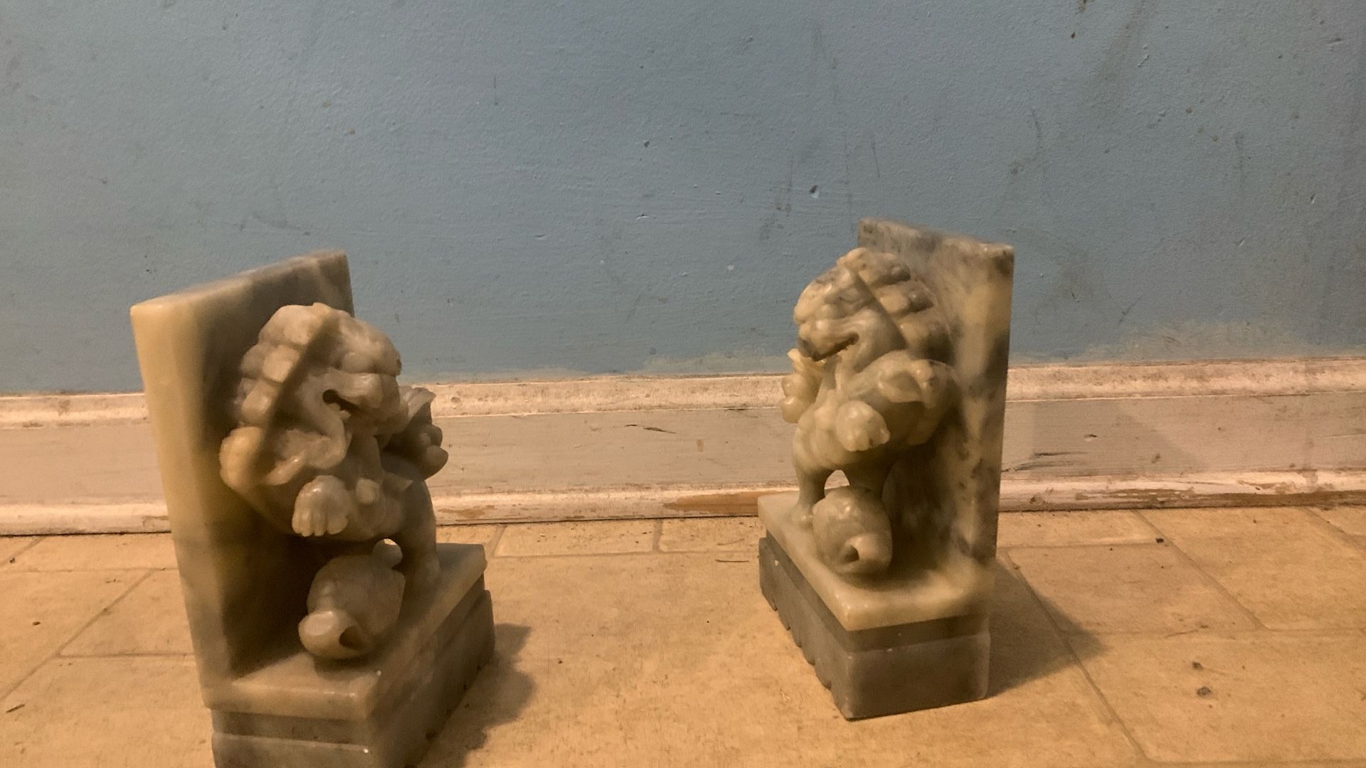 Antique Heavy Stone Fu Dog Statue Book Holder Foo Loin