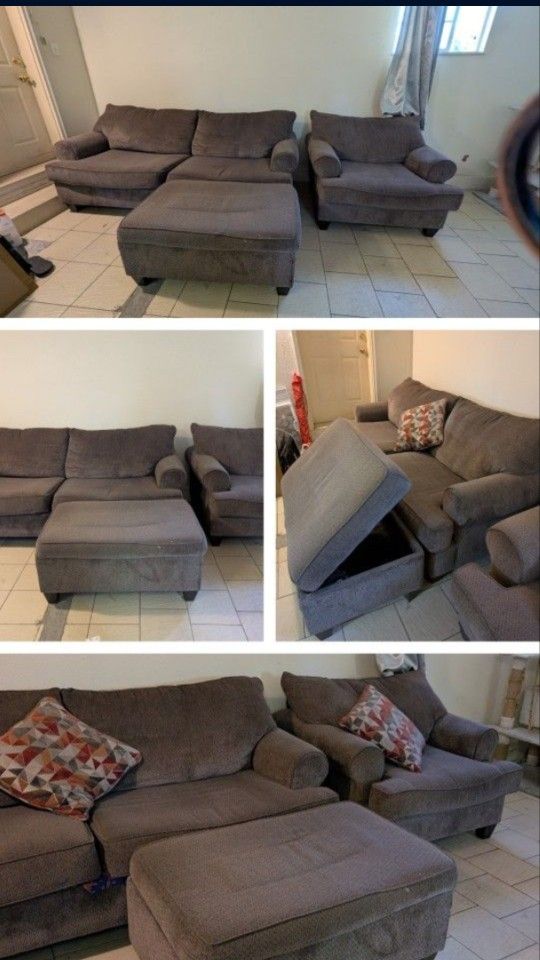 Couch set 3 seats with ottoman and decorative pillows $100 or OBO Visible wear on corners. Sold as is. Pick up ASAP