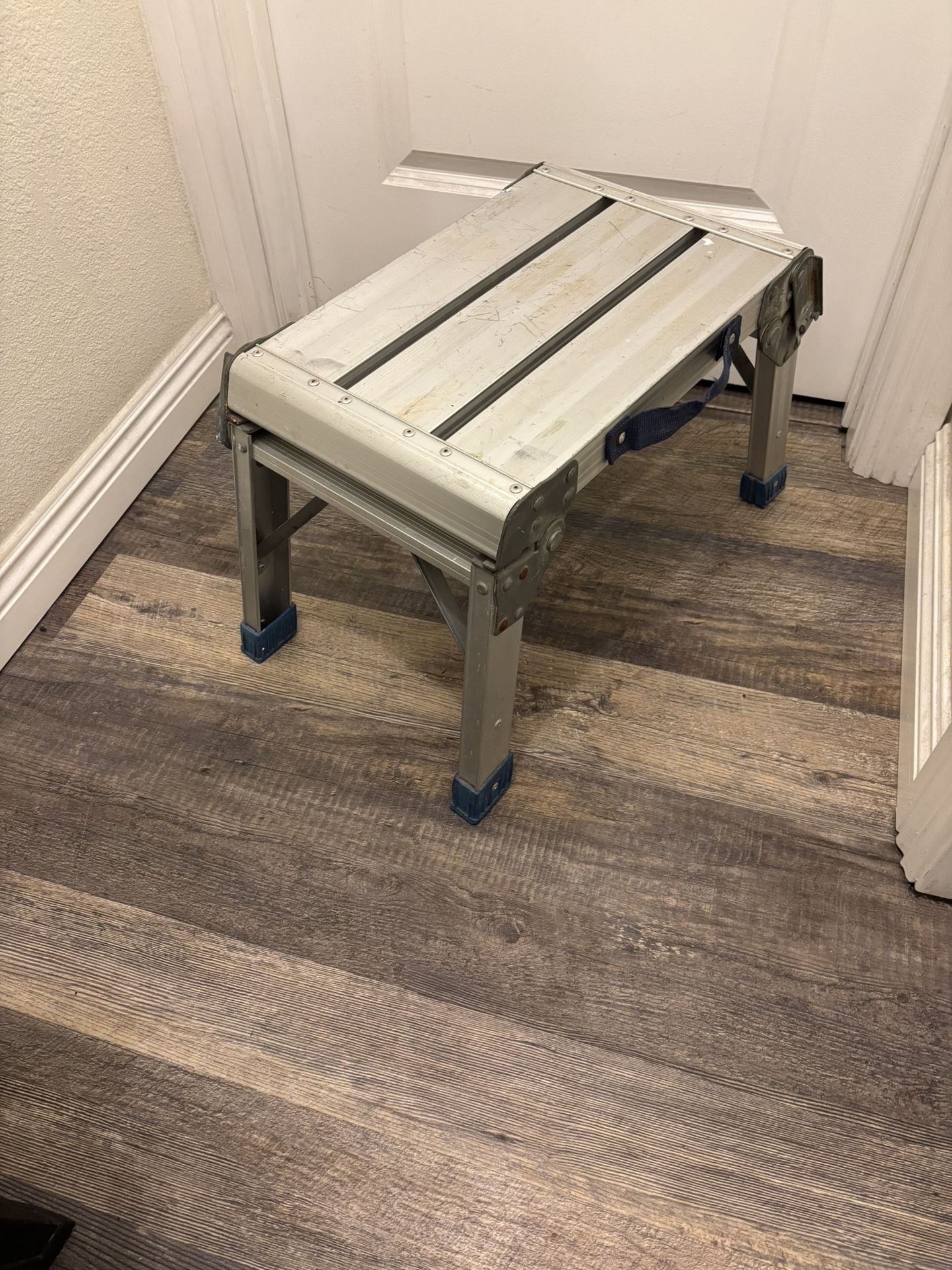 Used Max Works Foldable Alluminium Step Stool 350 Lbs With Carry Handle