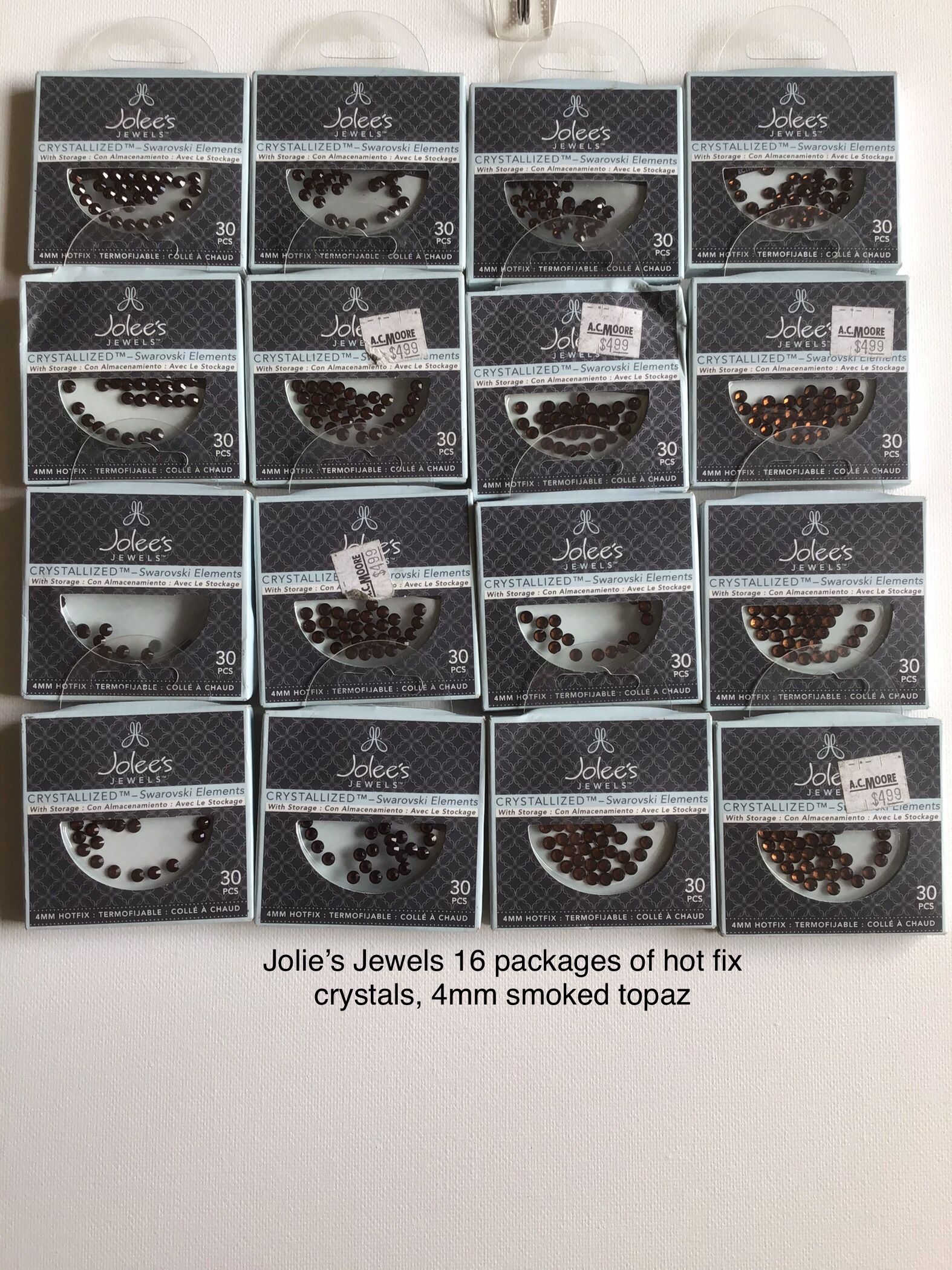 Jolee’s Jewels 16 packages of hot fix crystals ($40 for all) 4mm smoked topaz Check out my other listings and see if there is anything else that interests you . Just click on the circle by my name, then click on “more offers”. I have Wire Art & bead art, sun catchers, ornaments, Masks, lanyards, Colored Elastic, Fan Pulls, Fun’dangles, Shoes, Household items, Decor, Toys, Brooches, Earrings, Necklaces, Crafts supplies, Jewelry, Purses, etc... May the Lord bless you and keep you; the Lord make his face shine on you and be gracious to you; the Lord turn his face toward you and give you PEACE. Numbers 6:24-26 (Bible) In God I Trust