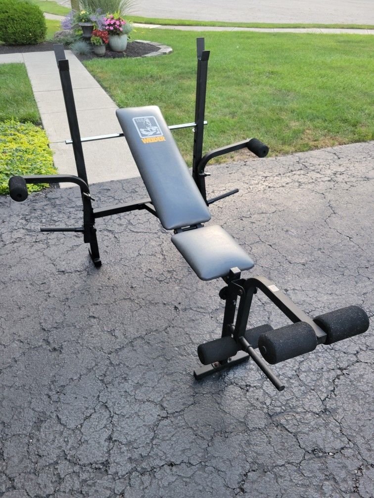 WEIDER BENCH PRESS WITH LEG AND CHEST FLY ATTACHMENTS