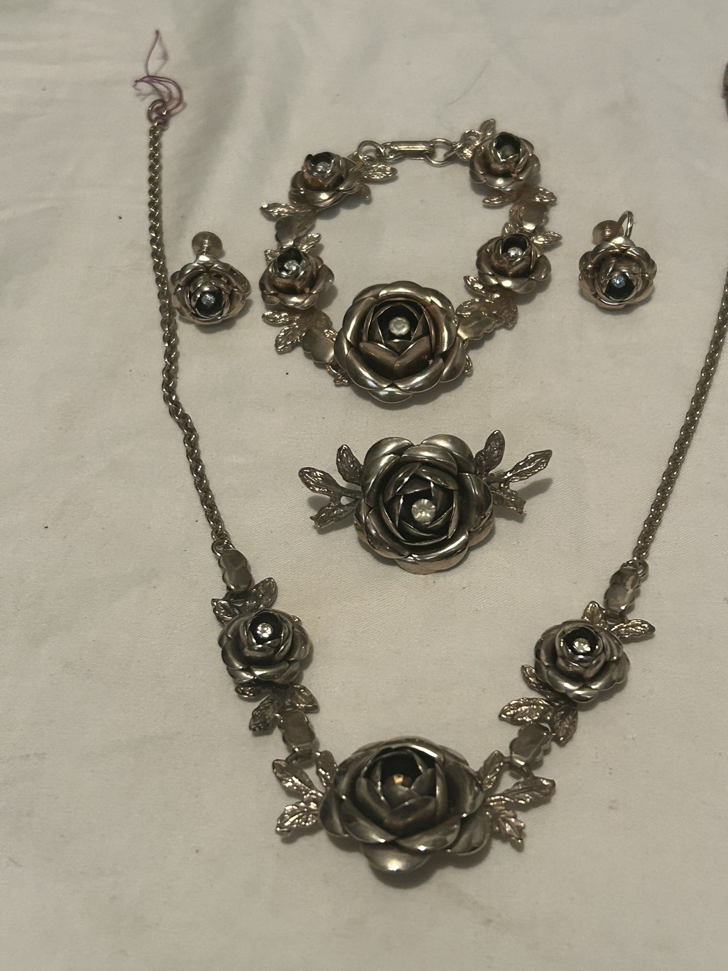 Flower Motif 4 piece Costume Jewelry Set No Makers Mark