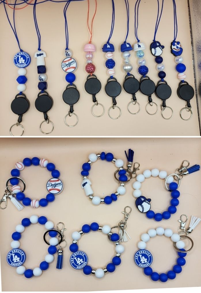D O D G E R S beaded themed Retractable Keychain Lanyards or Beaded Wristlets (PICK UP ONLY NE 93306)