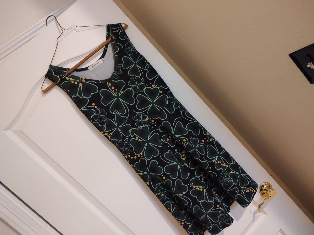 Small. Great dress need new owner. Looks amazing . Black with green accents