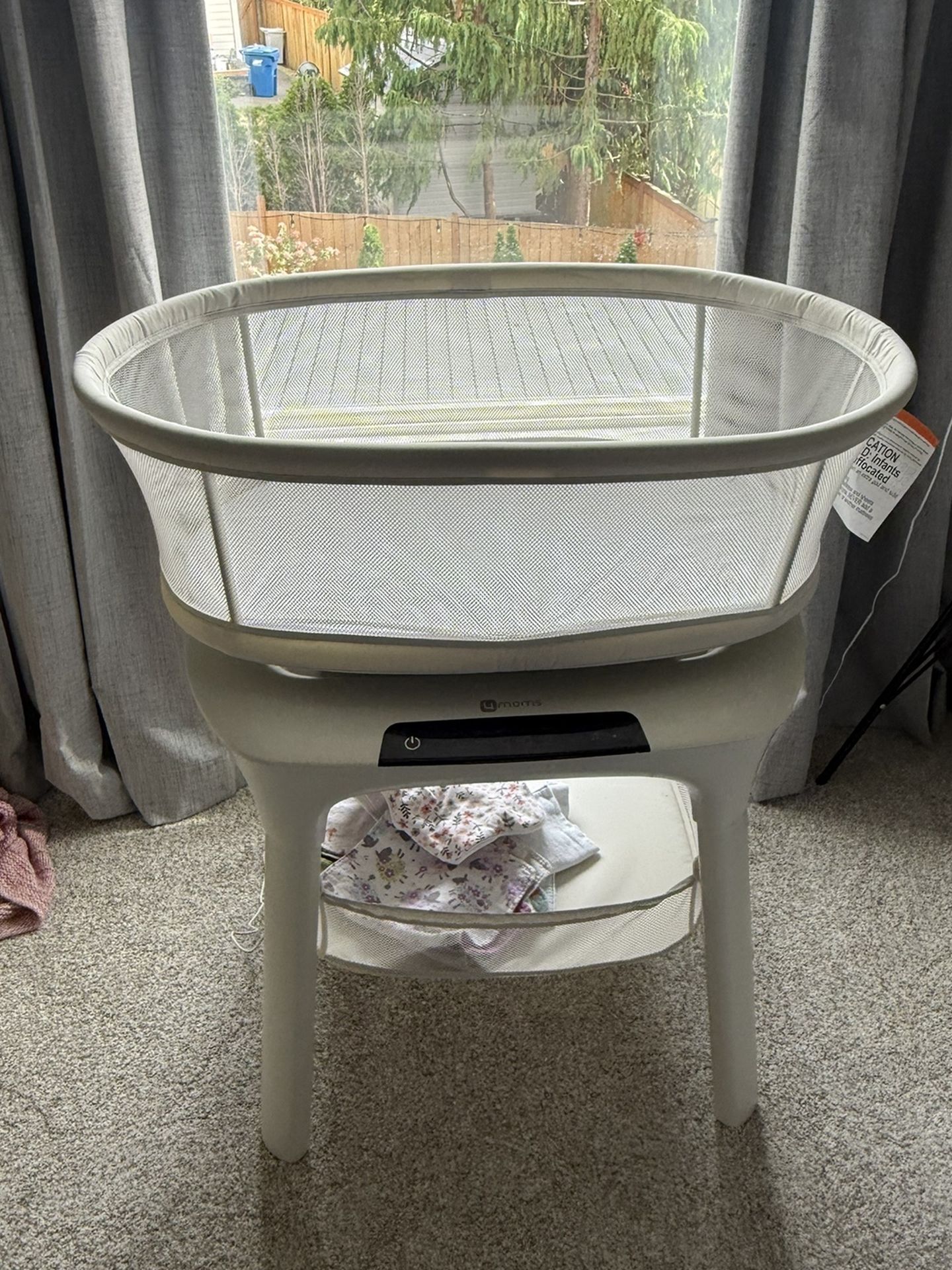 We are our Mamaroo basinet. It is in great working condition. We also have the Mamaroo baby swing that goes with it as well. We are asking 200 for the bassinet and 150 for the swing in a few buy both of them will sell them both for 300.