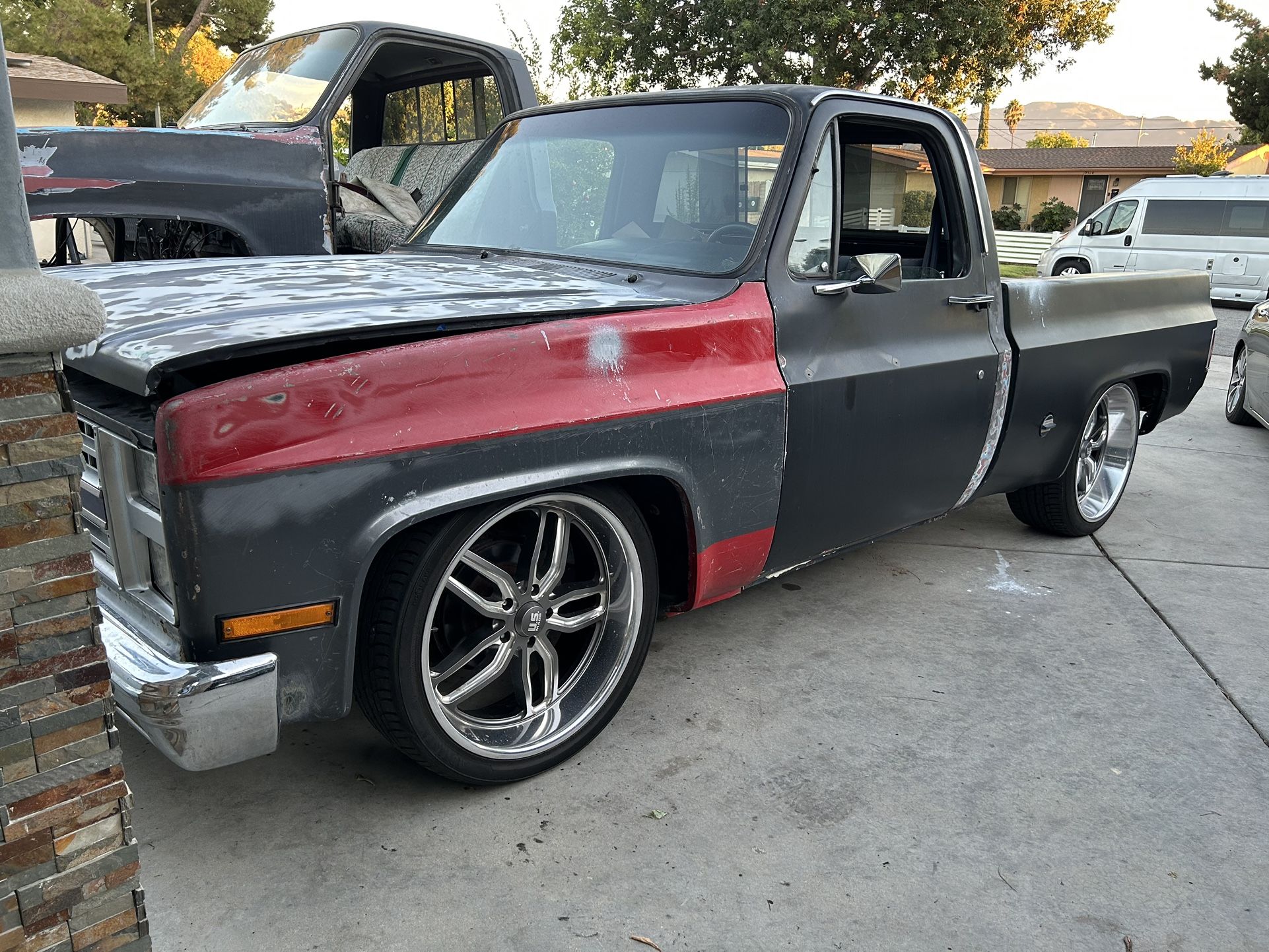 1982C 10 short bed diesel truck with a small block 350 and 700 R4 transmission. Lowered with a flip kit runs and drives tag to date, no smog, needs bodywork and paint. interior is not too bad but needs some love. no trades!!!