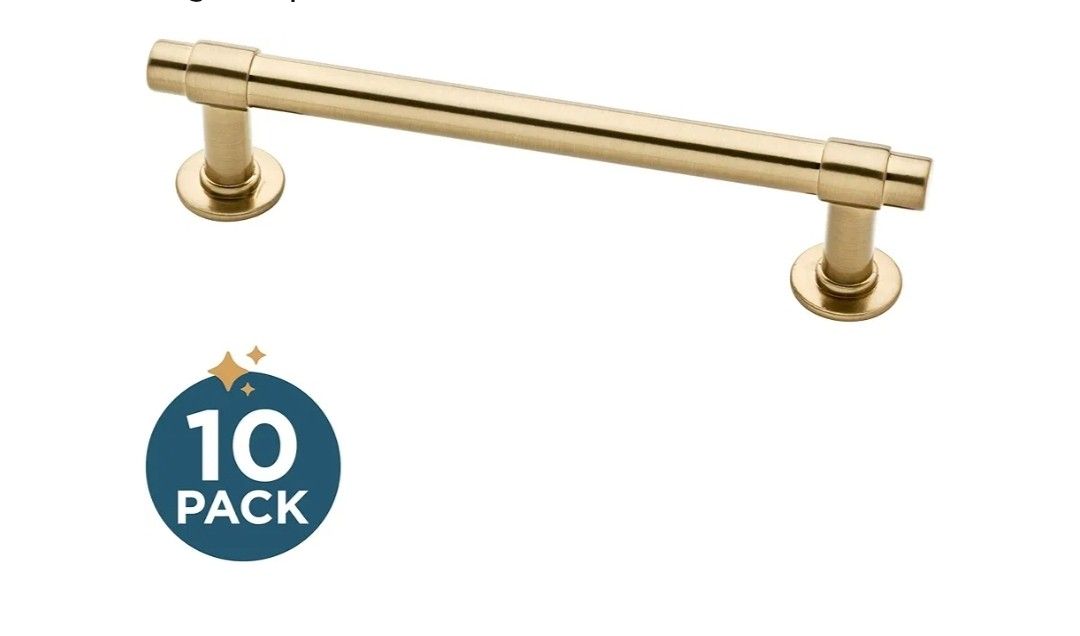 New (10-Pack) Cabinet Handles 4" Hole Center Pulls | Champagne Bronze Hardware Kitchen Door, Drawers, Dressers, Furniture- 1346 Material: Aluminum Brand: Franklin Brass Color: Champagne Bronze Style: 10 Product Dimensions 4.94"L x 1.19"W Exterior Finish: Zinc STYLE: Casual handles add a laid-back charm to kitchen cabinets, dressers, furniture BUILT TO LAST: Fade and scratch resistant finish lasts life of pull COORDINATE: Coordinates with Delta champagne bronze kitchen and bath plumbing fixtures and accessories DURABLE: Crafted from durable metal for years of enjoyment EASY UPDATE: Refresh your home in a weekend with hardware that reflects your style COLOR: Champagne bronze is a warm muted gold tone with light brushing and low sheen MEASUREMENTS: 4 in. (102 mm) center to center screw mounting, rear-mount installation SCREWS INCLUDED: Installation hardware includes (20) 1” screws