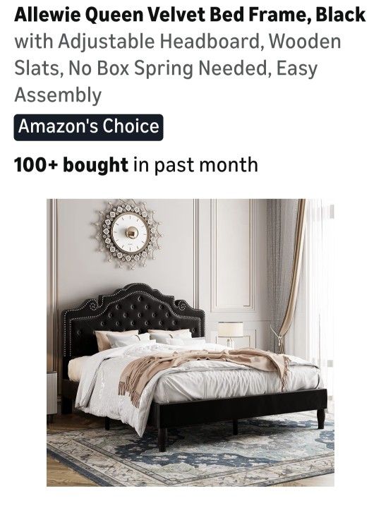 Queen Velvet Upholstered Bed Frame , Wooden Slats Support With Adjustable Headboard Diamond Button Tufted