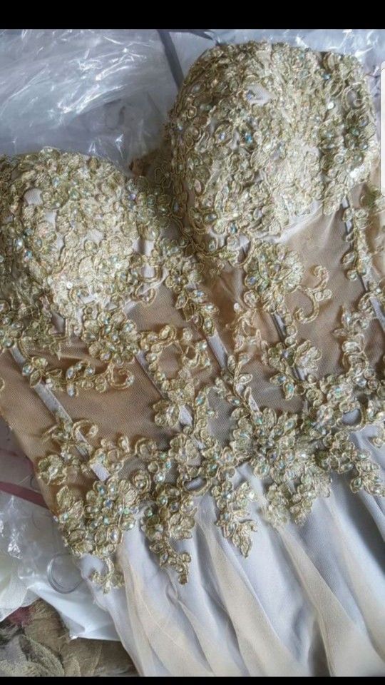 Gorgeous one-of-a-kind long princess dress with beaded bodice top. New, worn once for prom. Size 4. Not looking to rent. Buyers only.