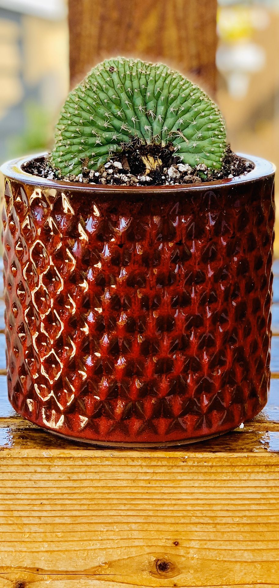 Live indoor Trichocereus Thelegonu Cristata cactus 🌵 house plant in a textured ceramic planter flower pot—firm price