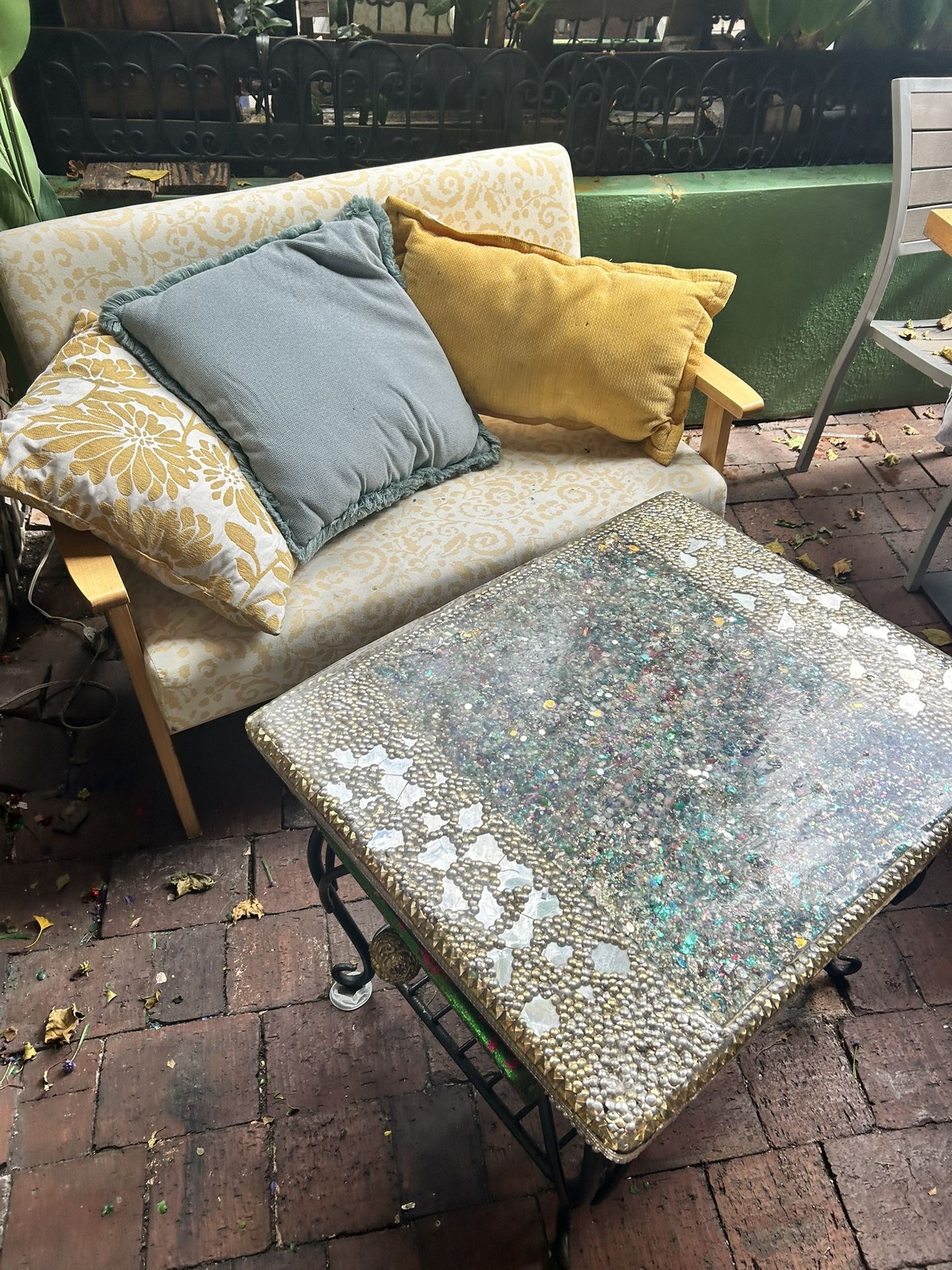 Out Door Couch With Pillows And Hand Made Table