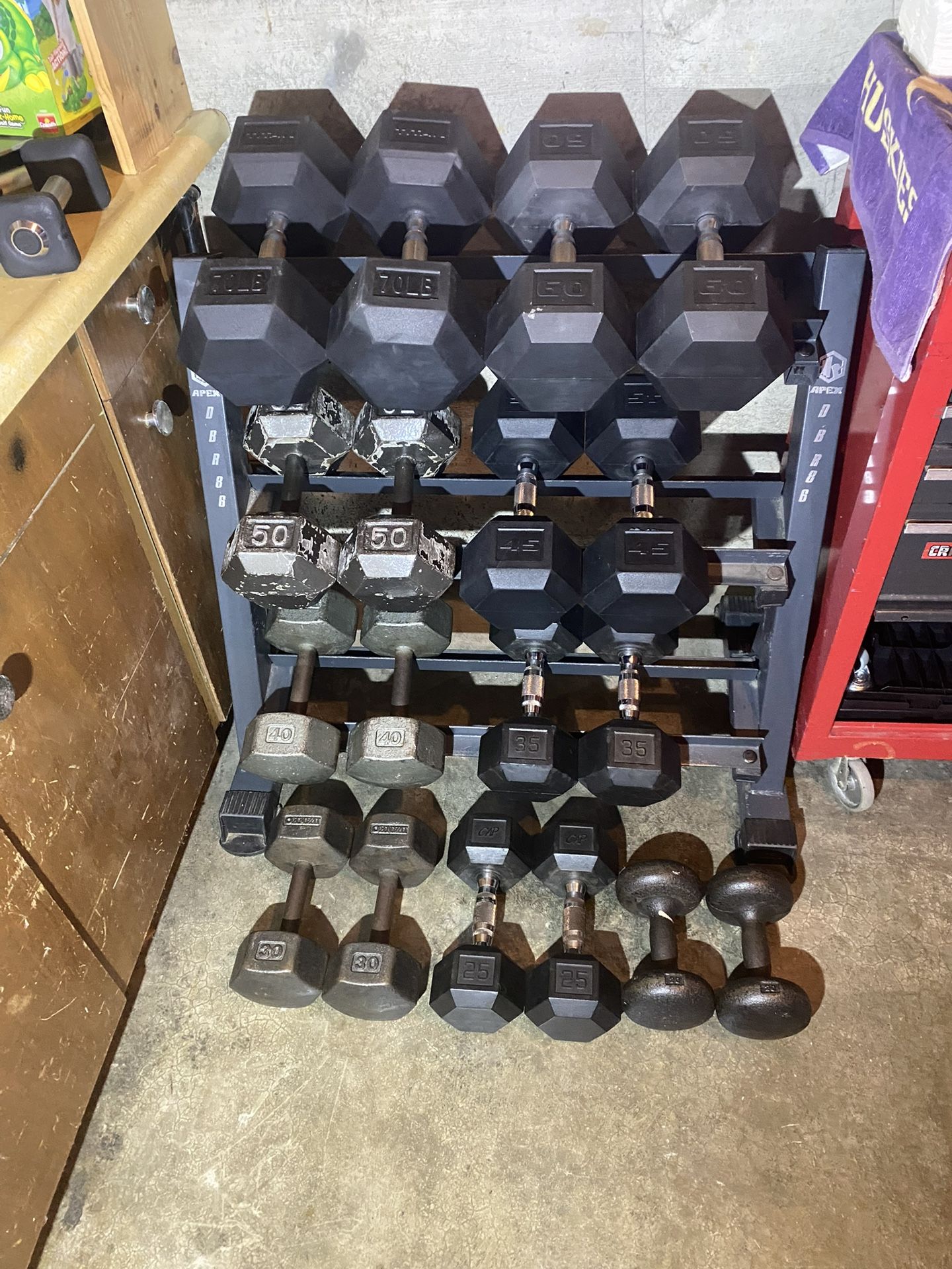 20lb set 25lb set 30lb set 35lb set 40lb set 45lb set 50lb set 60lb set 70lb set Along with dumbbell rack