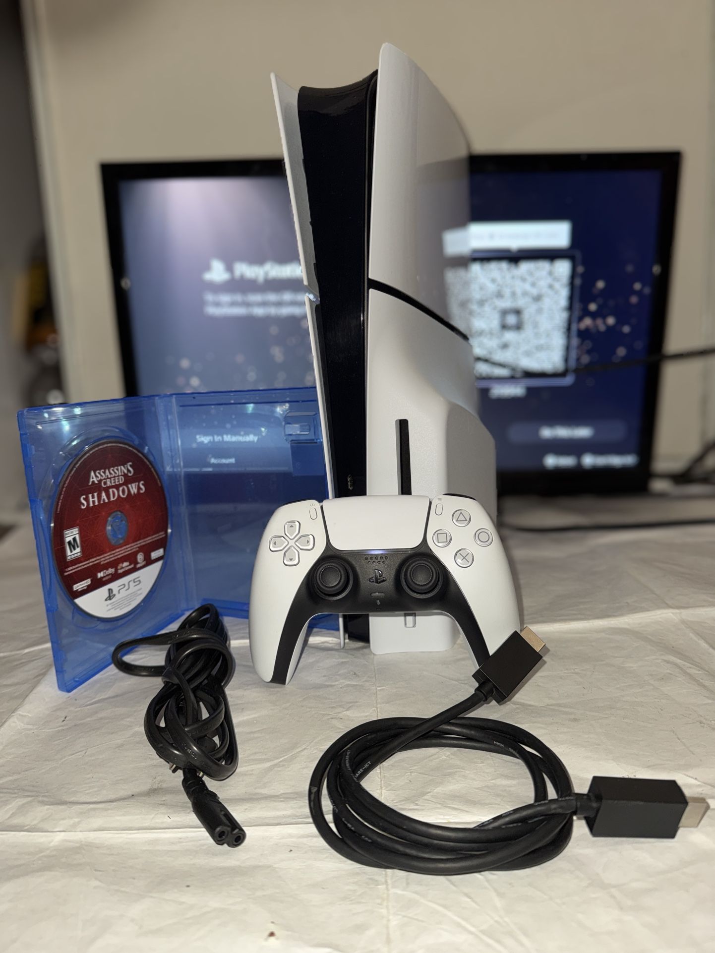 Like New* PlayStation 5 Slim 🌟 (Free Delivery Available) 🚚 (Everything Works ✅)(Price Firm 💯) (Español 👍)(Test It Out With Us If U Like 🎮) Bundle Includes ⬇️ - Game ⭐️ - Controller 🎮 - HDMI & PowerCord Included 💯 - 1TB PS5 Slim Disc Console 💫 PSN clean ! (0 issues, works up to standards, clean inside and outside. Video or FaceTime Call can be provided to assure you it works) Over 1K sells & ⭐️⭐️⭐️⭐️⭐️’s rating 🤝 👍.