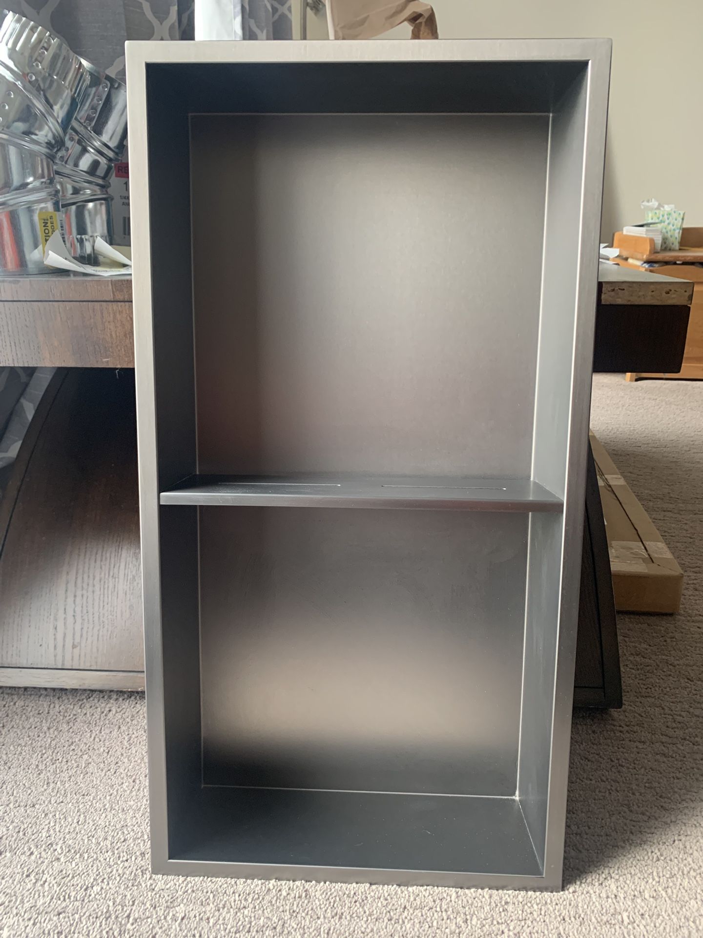 12X24 Inch Shower Niche, Gun Metal 2-Tier Stainless Wall Niche NO Tile Needed. Perfect for keeping shampoo, soap, and accessories neatly organized. Sleek matte finish fits any contemporary style. Can be recessed into the wall for a seamless look.