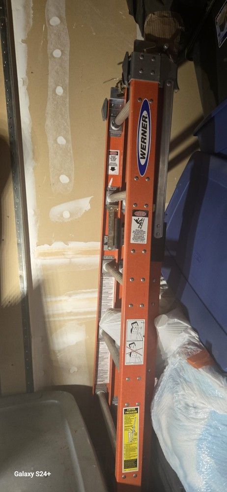 7' ladder. It's new never used. 375lbs. Capacity. It's in a storage never seen the sun or water. If interested please be reasonable with this firm price, if not don't waste time. You could look look it up in the home depot for price. Need to get rid of it.