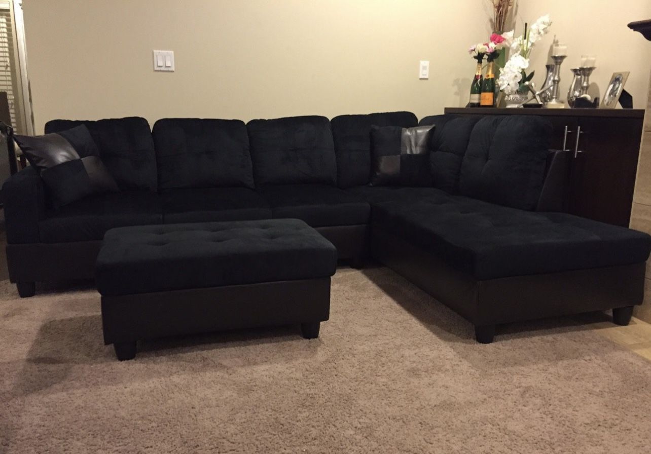 Black Microfiber Sectional Couch And Ottoman