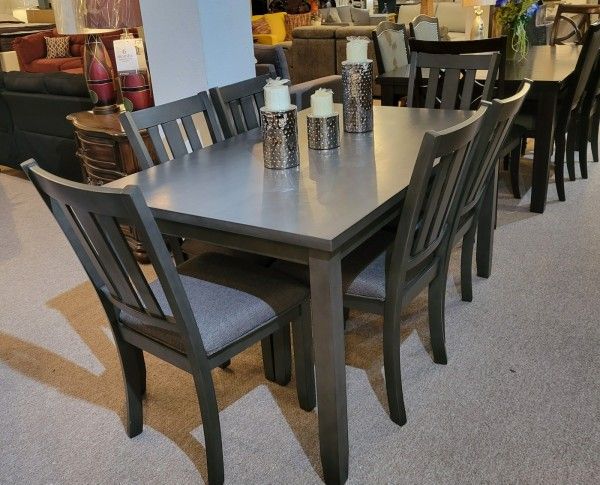 Chair size: 22"x18"x38"H Euroclassic offers quality bedroom, living room, and dining room furniture at OUTSTANDING PRICES. Free to your Home! A Portland Tradition Trusted For Over 80 Years Gray Table size: 60:x36"x30"H Local Free