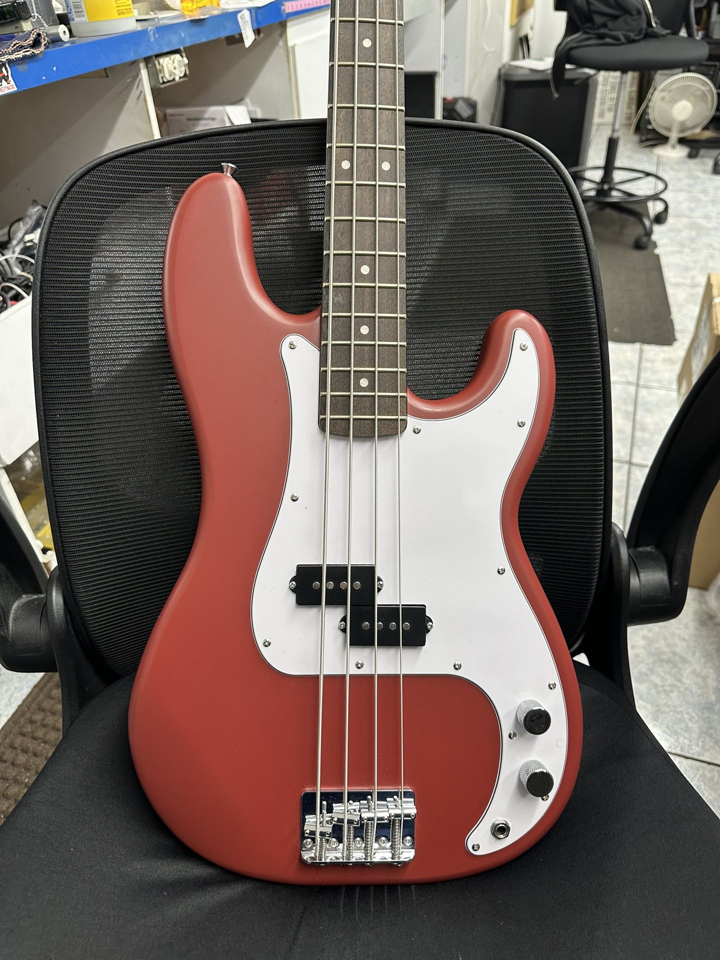 Item #: 101.11..7201 Type: Bass Brand: Squier Model: Precision Bass Size: Full Color: Red Number of strings: 4 Case included: yes Country of Manufacture: China