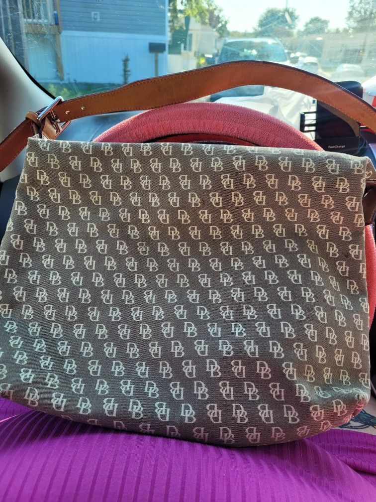 Dooney and Bourke "Dark Ivory"/greyish color purse Small stains in side and out but still in an overall great shape Open to offers! π #Dooney&Bourke #purse #handbag #satchel #obo