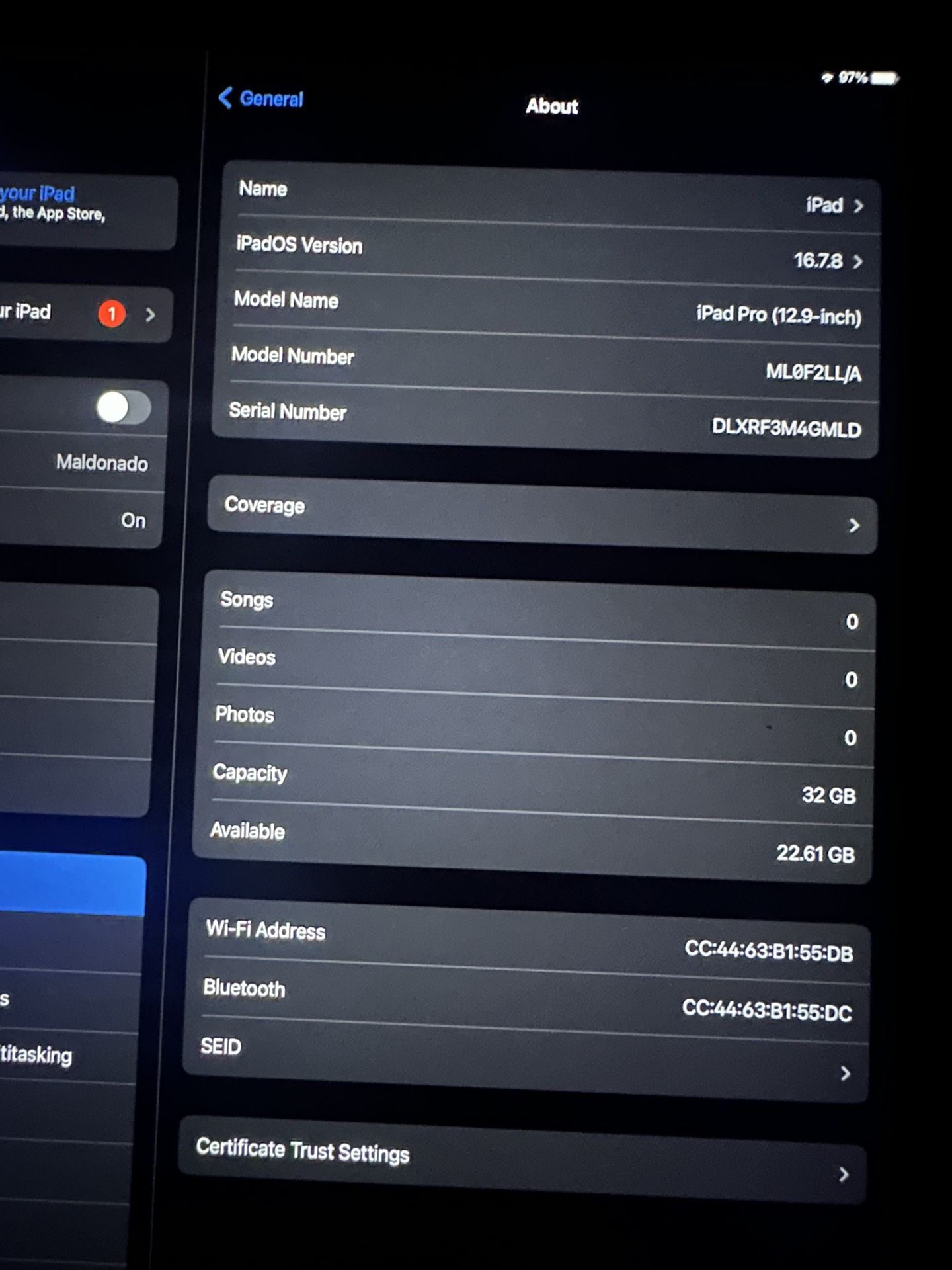 iPad Pro 12.9 1st Gen Color: Space Gray Storage: 32GB Model Number: FL0Q2LL/A Serial Number: DLXRF3M4GMLD Free case No Box No Charger Local pick up by Sutton place, all sales are final.