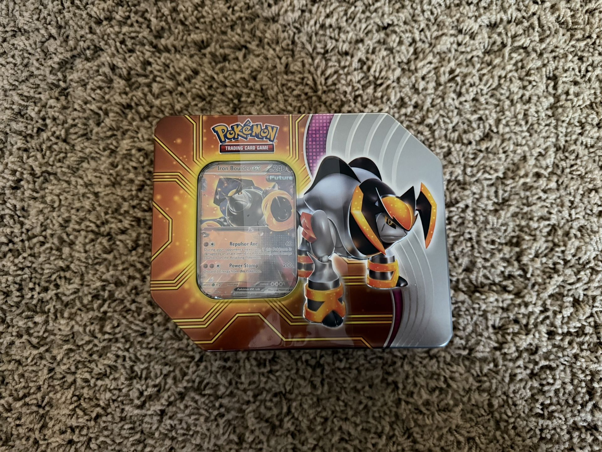 POKEMON PARADOX DESTINIES IRON BOULDER EX TIN QUANTITY: 1 Available CONDITION: CONDITION: All sealed with no rips, tears, or dents. DESC: Priced to sell and I am located in Eastvale.