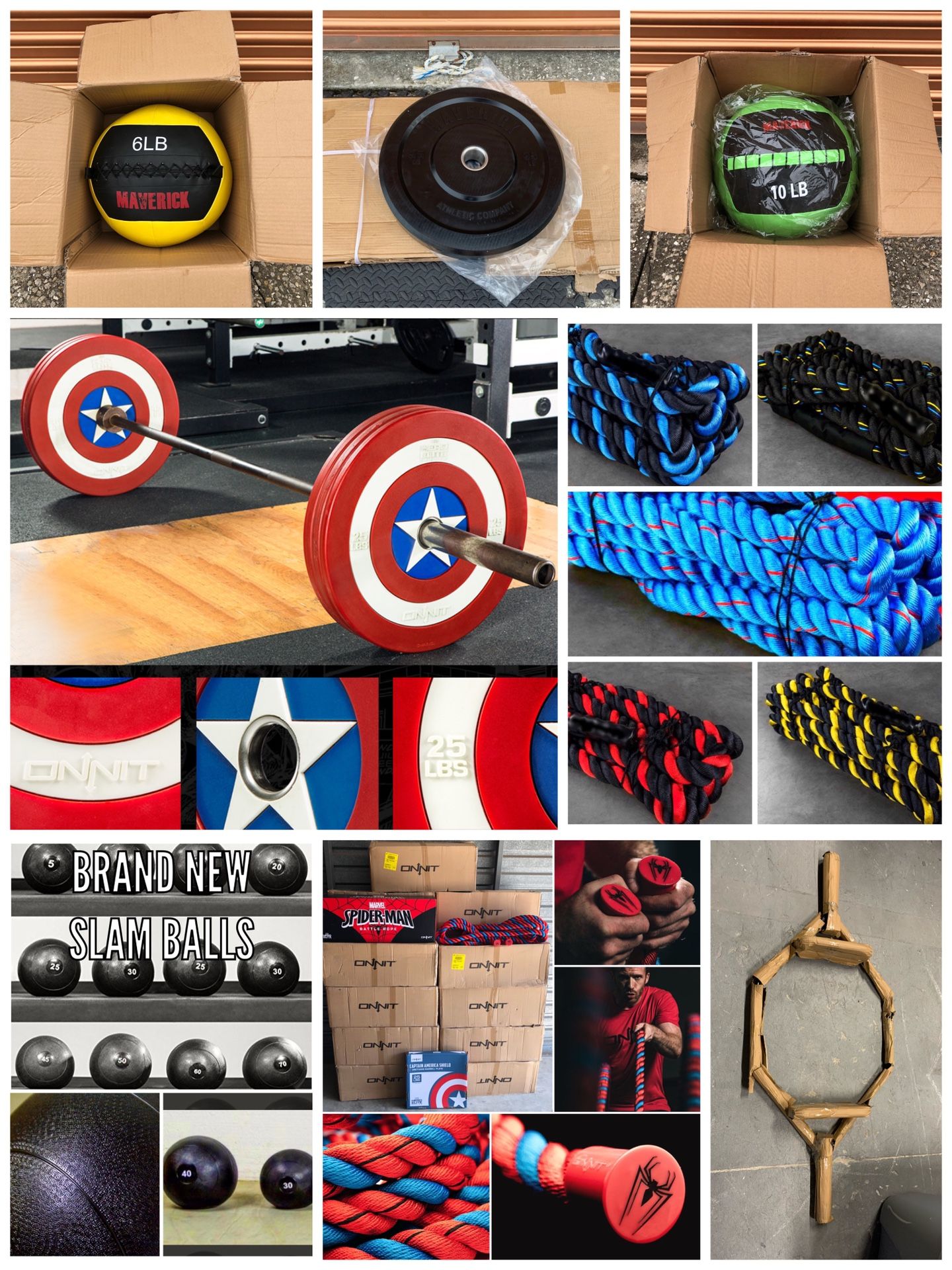New Home Gym Fitness Equipment! Battle Rope, Medicine / Wall Ball, Slam Ball, Bumper Weight Plates, Olympic Hex Bars