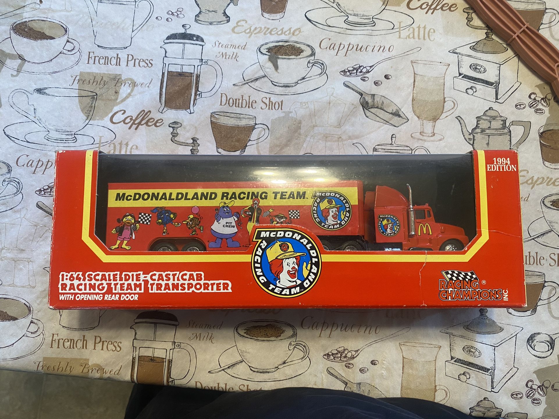 I have a 1994 McDonald’s racing team transporter toy truck in box. Selling it for 25 or make offer