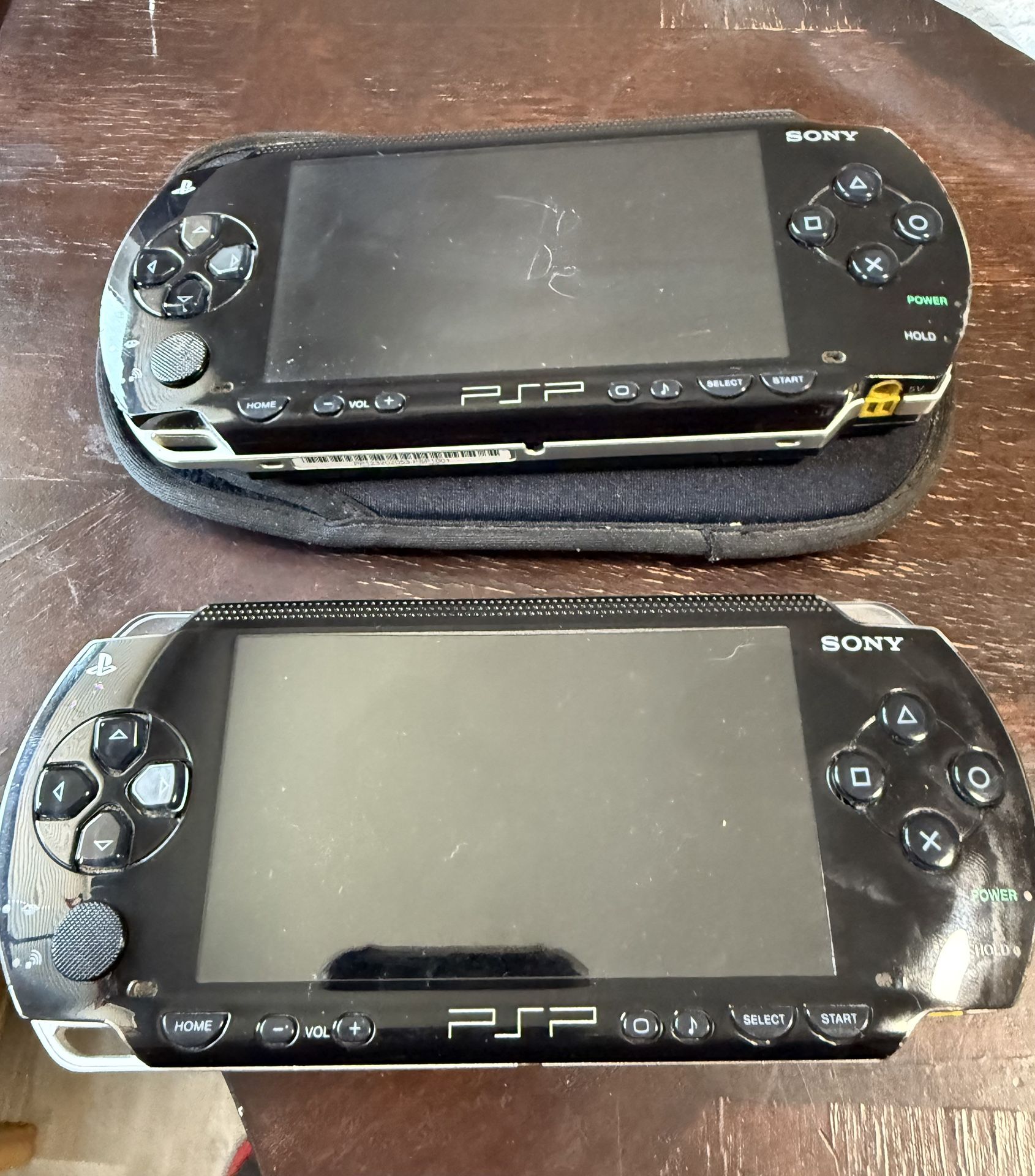 Selling two psp both of them are for parts or repair one of them has the battery problaby don’t work one of them it’s missing the power on button so can’t test them so selling both for parts 50$ takes them