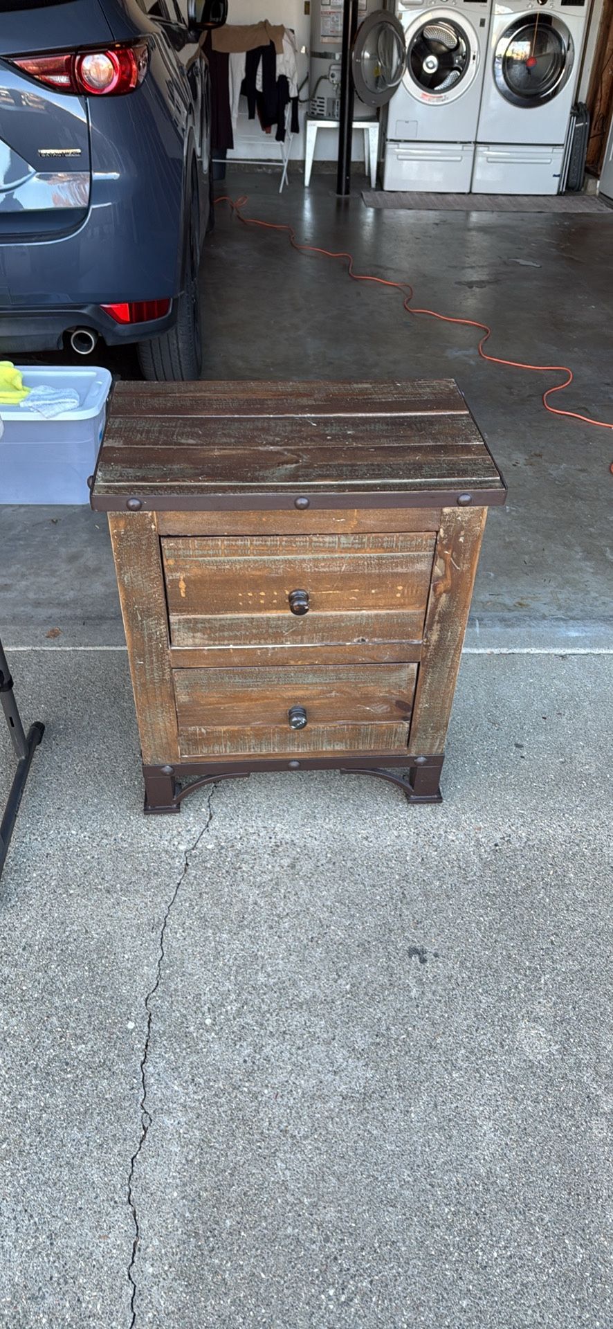 Nightstand set ready for pickup. Knob on dresser is loose and two knobs on dresser are loose. See photos for sizes!