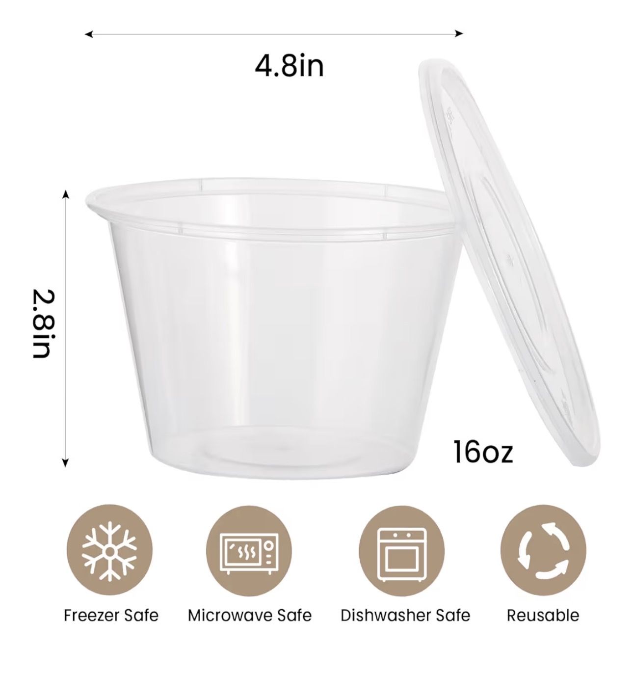 50Sets 16oz Deli Containers with Lids,1 Pint Plastic Food Soup Containers, Disposable To Go Bowls with Lids for Kitchen Campling Prep,Service,Storage Snack,Fruit,Meal,Freezer Microwave Safe R19B