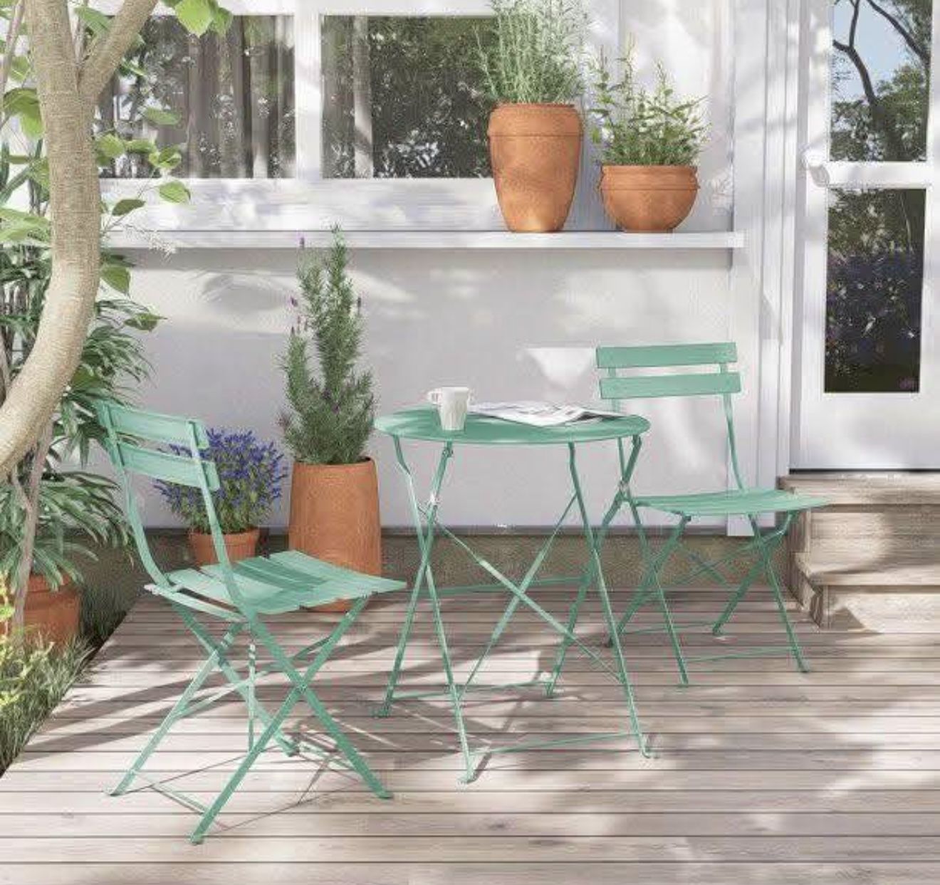 NEW-Grand Patio Premium Steel Patio Bistro Set, Folding Outdoor Patio Furniture Sets, 3 Piece Patio Set of Foldable Patio Table and Chairs, Mint Green