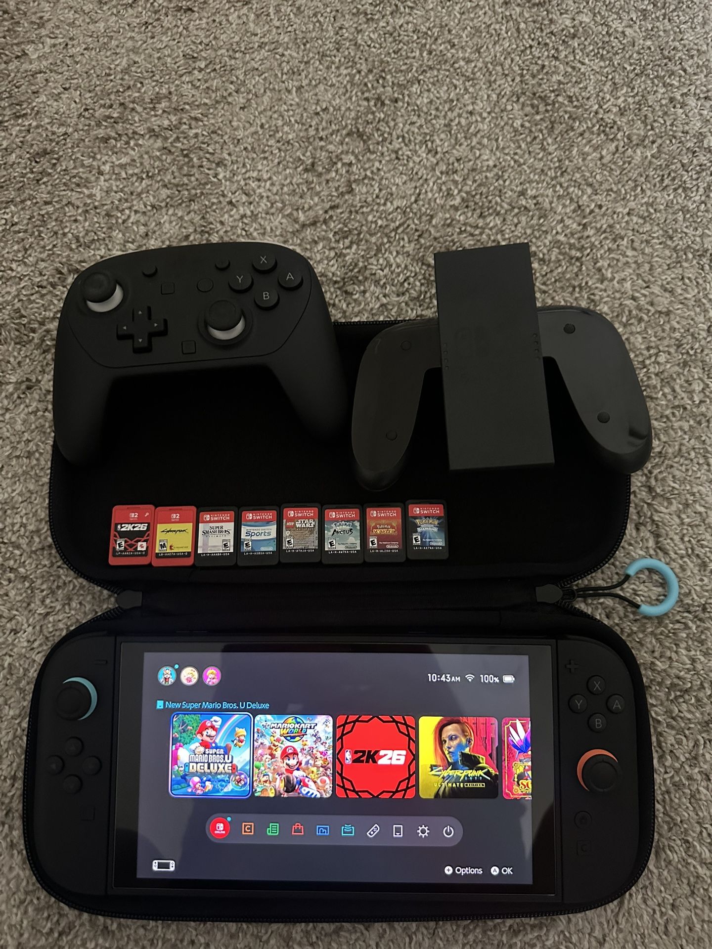 Like New! Selling as a whole bundle Switch 2 Console and Dock Pair of Joy cons Pro controller Carrying case Screen protector 8 games I still have all the original boxes too