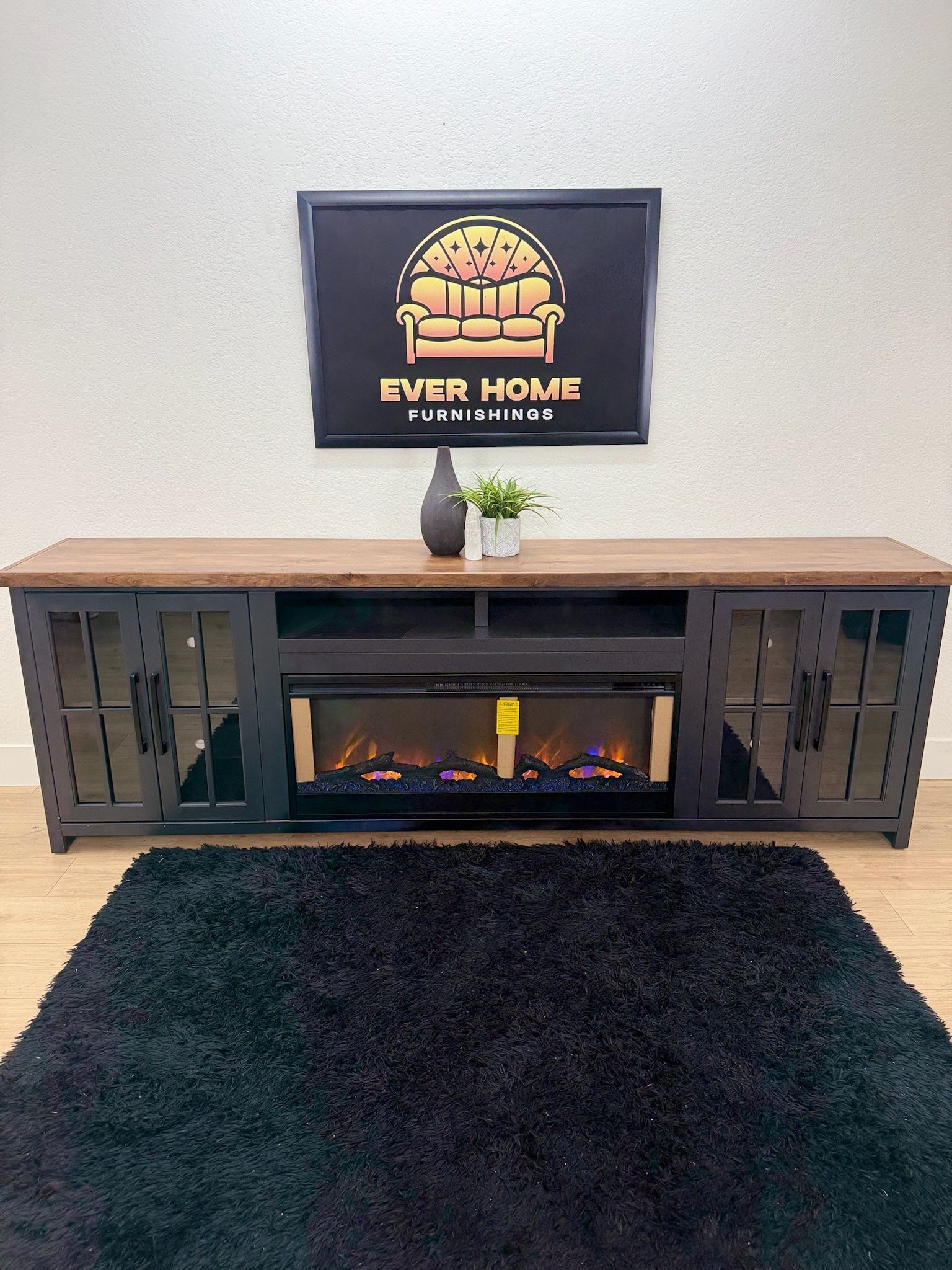 Brixham 97” inch Solid Wood Fireplace TV Stand Console for TVs up to 100 inches, Two-Tone Finish