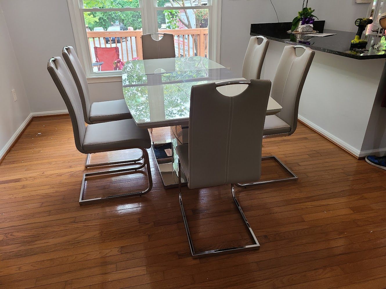 Nuevo juego de comedor moderno de 7 piezas: mesa extensible con 6 sillas