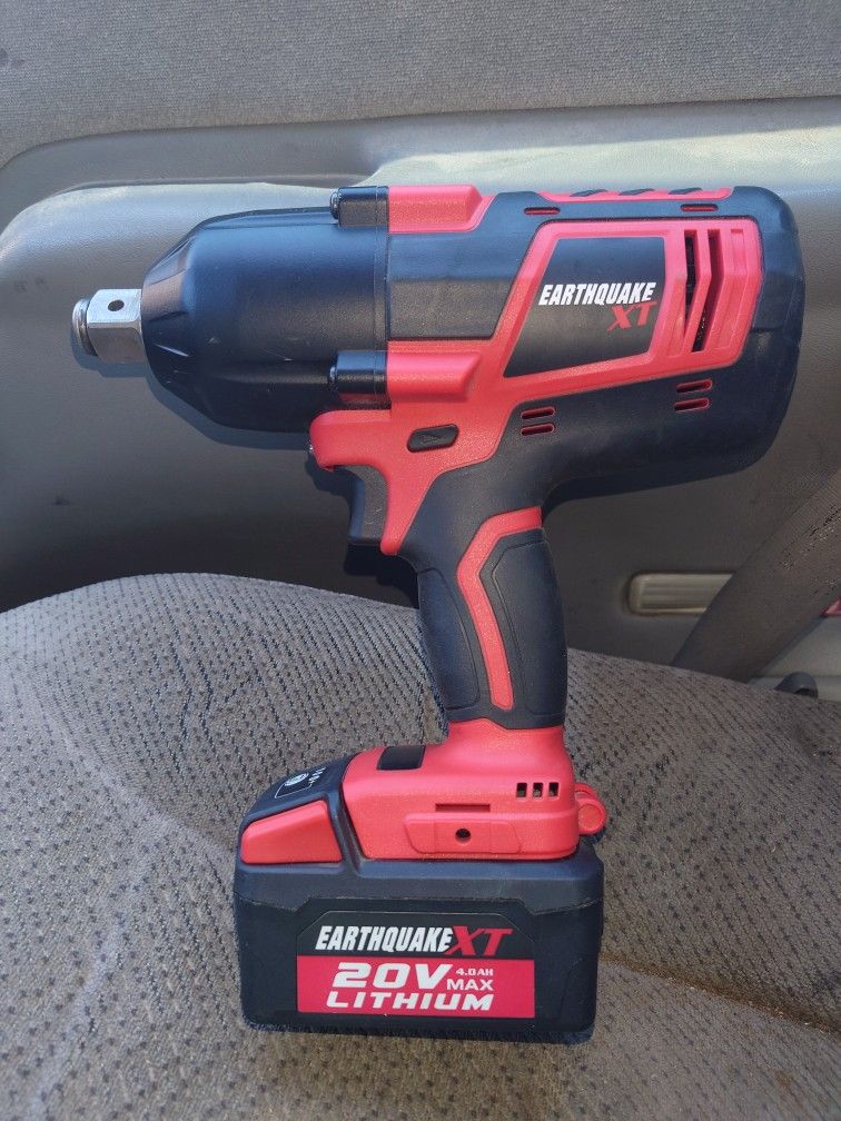 Earthquake xt 3/4 impact 20v. Brand New and Brand New battery also. 20v. 4.0ah. 1400ft. Lbs. Torque. Never been used.Asking $325. OBO. Good quality. With( Charger)also.
