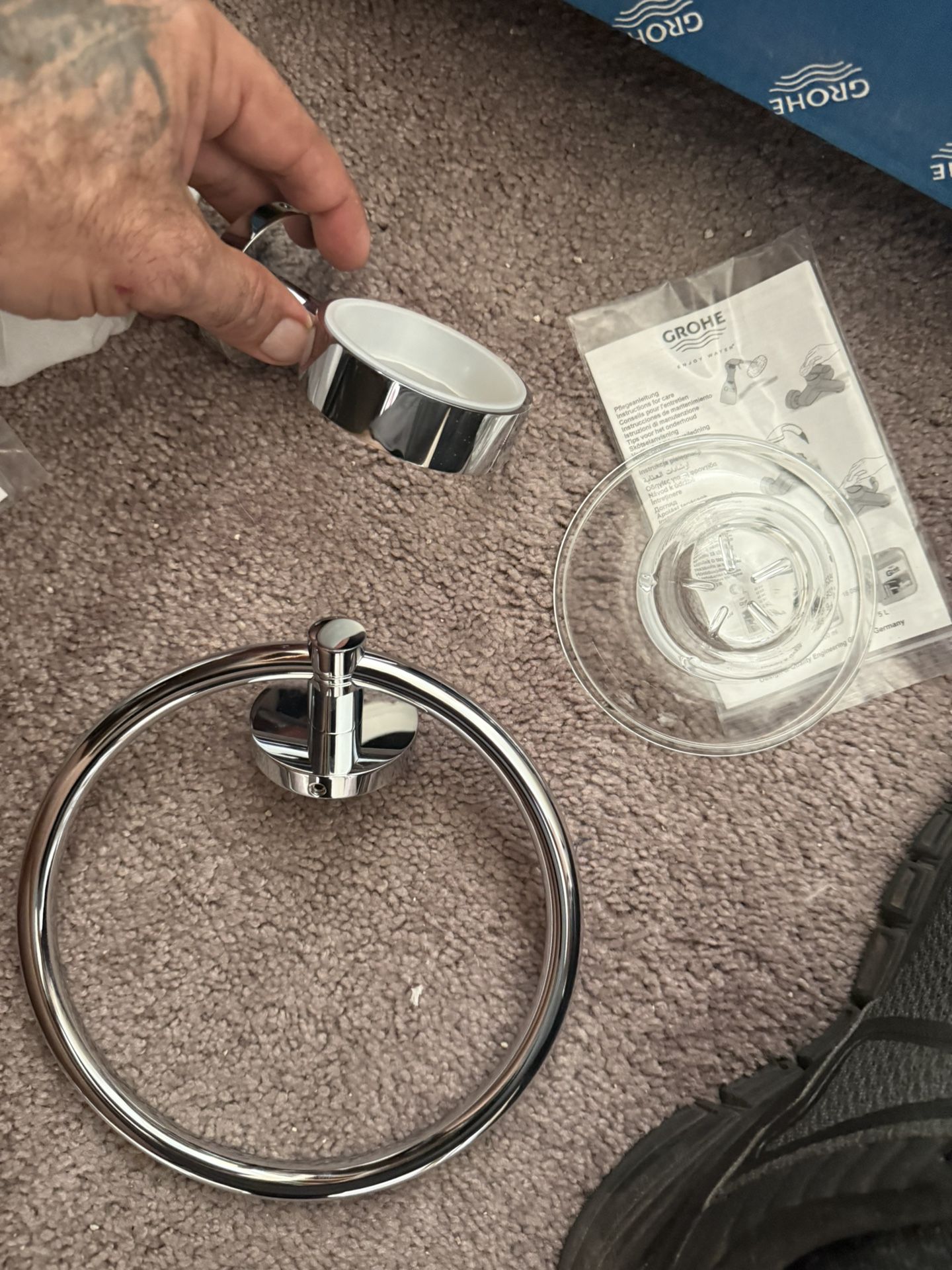 β¨ Brand new in box β never used. Includes: towel bar, toilet paper holder, robe hook, and towel ring. Top-quality Grohe design and finish, stylish and durable. π‘ Retails for $100+ in stores.