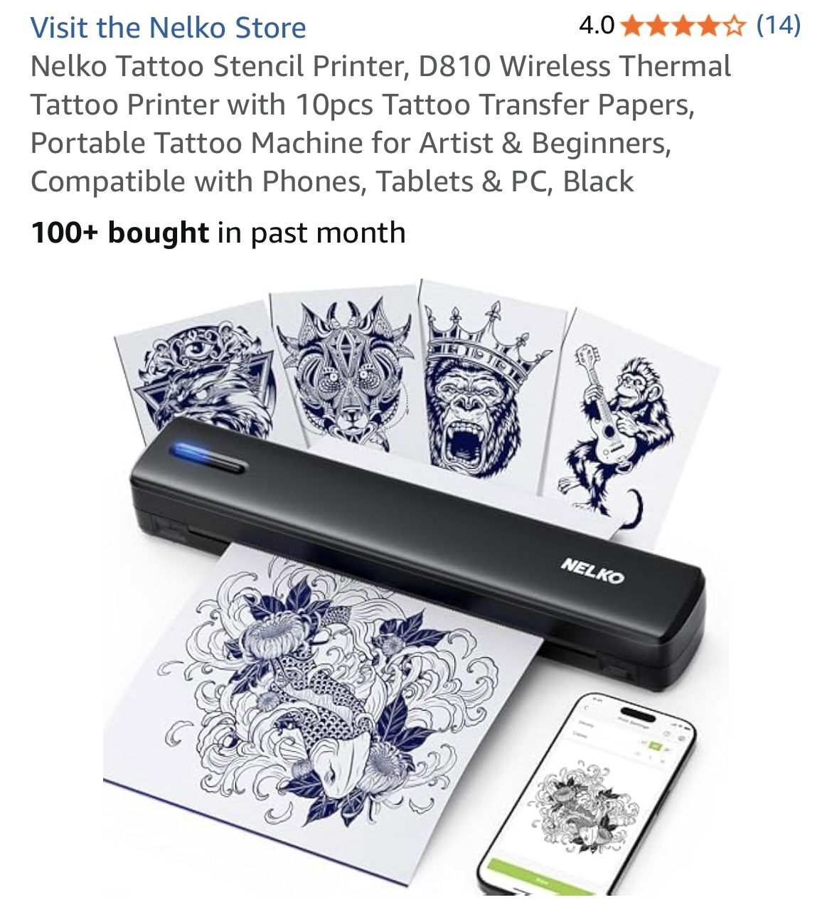 Nelko Tattoo Stencil Printer, D810 Wireless Thermal Tattoo Printer with 10pcs Tattoo Transfer Papers, Portable Tattoo Machine for Artist & Beginners, Compatible with Phones, Tablets & PC, Black Brand new ,Pick up nearby( Walgreens 2799 S white rd San Jose ,95148 .) First come first serve. Let me know earlier when you on your way to come , I will send you my exact address or meet you at Walgreen