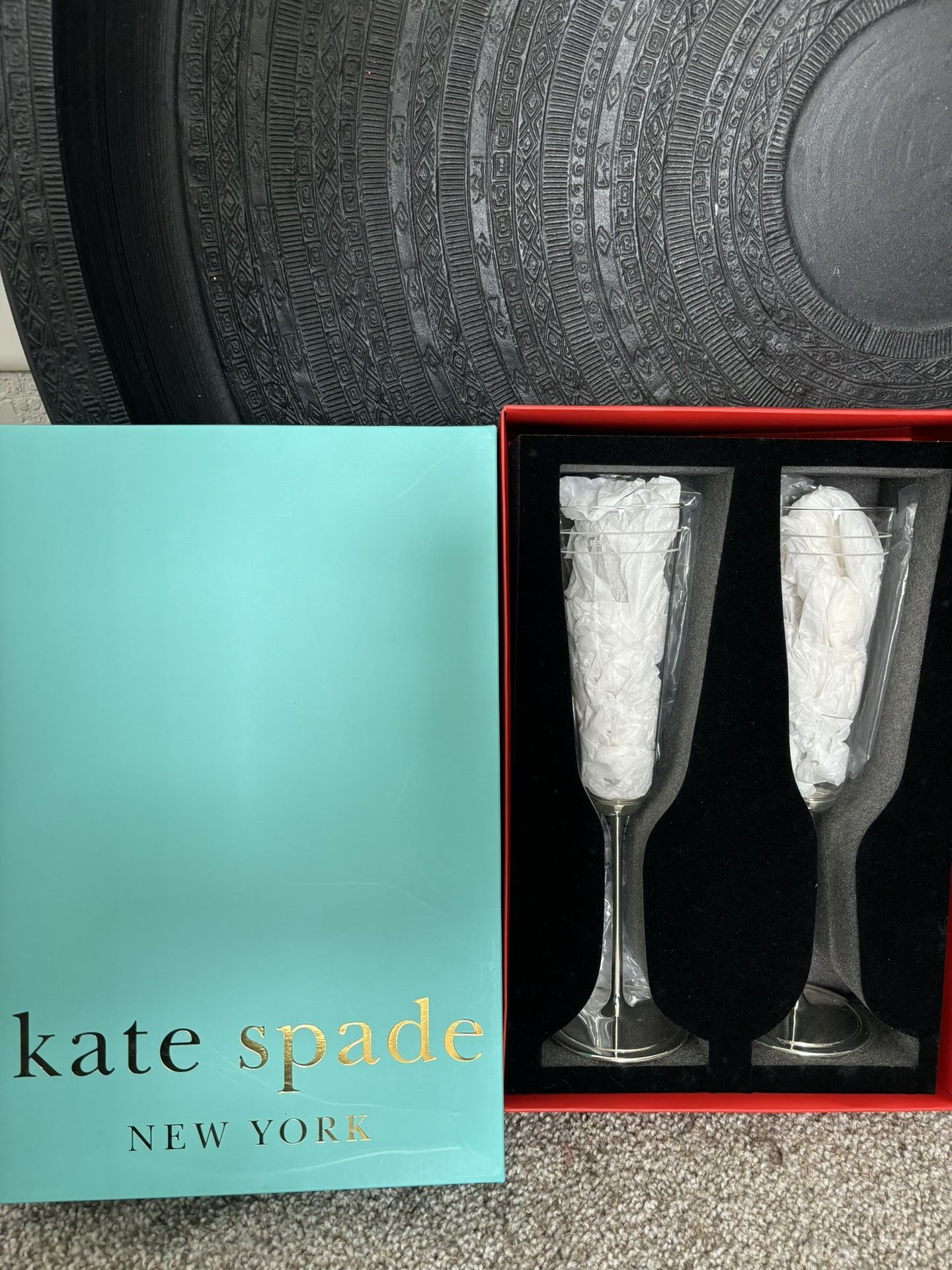 Kate Spade Mr And Mrs Set - Lenox Cake Cutting Dessert Set And Lenox Champagne Flute Set