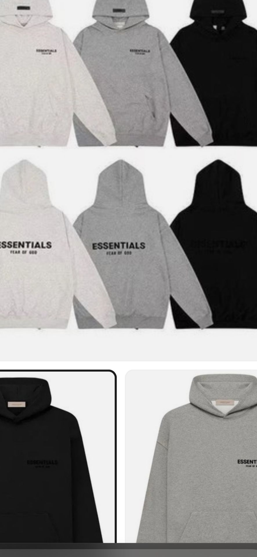 Essential hoodies all sizes in black light. Oatmeal and dark oatmeal .. ….CHECK MY PROFILE FOR MORE BRANDS