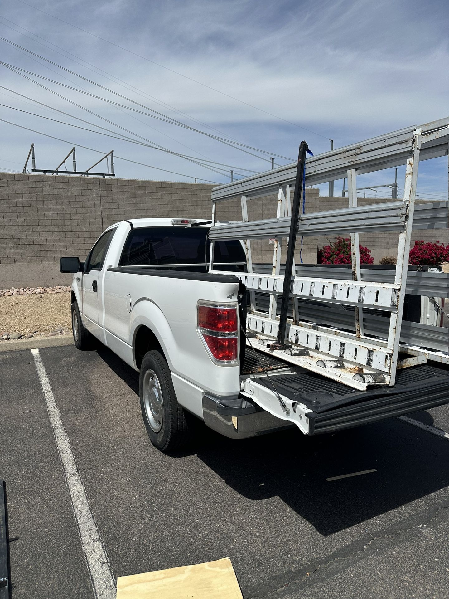 It’s about 90” long. 48” tall. Hauled everything from shower doors, big patio doors. Has a stake for each side. I17 and Dunlap.