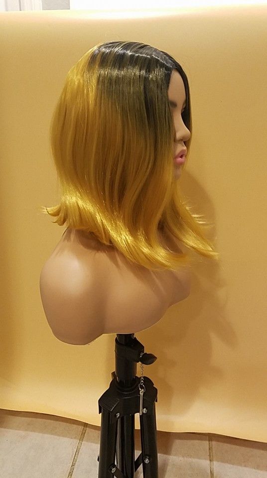 PRICE IS FIRM BRAND NEW Specification: Hair Material: Premium Quality HEAT RESISTANT Japan Synthetic Fibre Color: As Picture Show Hair Cut: Without Bangs Hair Style: Straight Hair Length: 14"(+/- 1" ) Cap Size: This wig comes with the elastic strap. Fully ADJUSTABLE to fit all sizes Package Included: 1 x Wig Important Information - Please, Read Before Buy A. Color: COLOR that appears on your monitor could vary from the original color of the wig due to different MONITOR SETTINGS. B. Approx. Length: The length on a hairpiece will appear differently on person to person. Depending on the person's head, face size, face shape, and neck measurements the length can appear longer or shorter. Please pay close attention to the approx. length on each wig. C. Cap Adjustable: If the wig has adjustable straps, they are mostly in the form of elastic adjustable hooks. However, some wigs have Velcro adjustable straps. D. How to Style Synthetic Wigs: For the photo shoots, all that was done to the wig /hairpiece is, taken out of the package, flip the wig upside down, hold it by the tag inside the cap and given it a vigorous shake. This will loosen the strands from being in a stationary position in the package and also offer volume. You can also finger style or use a wig pick or wire brush to style it. Hair spray can also be used. C022 Gold
