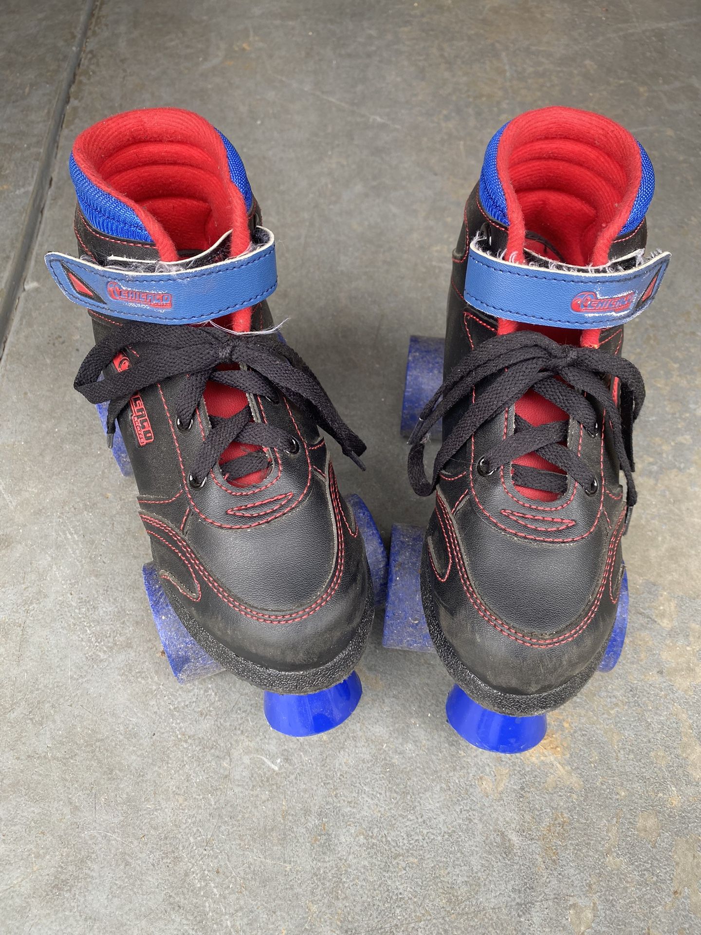 Chicago Skates Boys Quad sidewalk roller skates. Size 1 Children US. A CLASSIC: This iconic Quad Sidewalk Skate from Chicago is strategically designed for gliding but is also a popular choice for all-around rink and social skating for decades. SUPPORT: The Chicago Quad Sidewalk Skate features a controlled high top boot for optimum safety as well as high quality laces for maximum protection, leaving your foot comfortable and secure. STABILITY & CONTROL: Featuring 4 premium oversized wheels for a more enjoyable ride. The Chicago Quad Sidewalk Skate is just the thing to easily glide indoors and outdoors. COMFORT FIT: The Chicago Quad Sidewalk Skate is easy to pull on and off, the lightweight boot has a lace-up front with a fold-over Velcro strap at the top for a secure and convenient fit. SPECIFICATIONS: Featuring 4 premium oversized wheels, semi-precision bearings, high impact double adjustable chassis and truck, a self-adhesive power strap as well as a built-in toe stop.