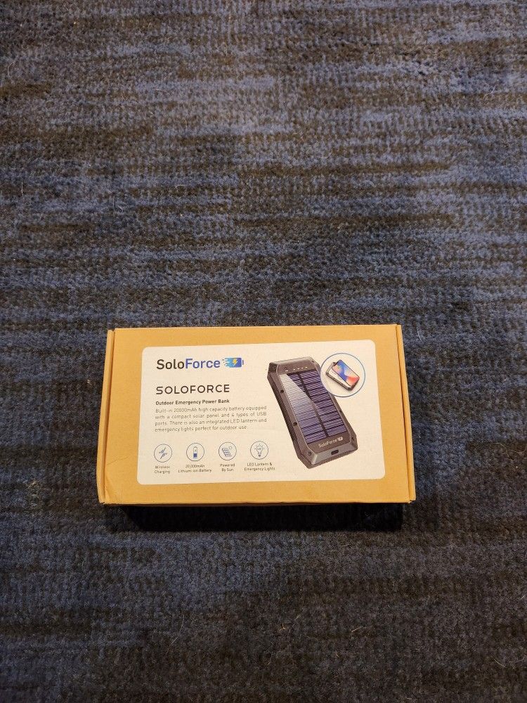 Built-in 20000mAh high capacity battery equipped with a compact solar panel and 4 types of USB ports